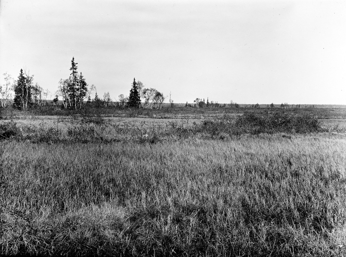 Halvenkel beckasin,( Lymnocryptes minimus) Biotop för Scolopax gallinula? Muddus xxxxxxx 13/6 26 Starrkärr med fastare tufsträngar (revlar) bevuxna med Betula nana, dvärgbjörk, Häckterräng för Scolopax gallinula af hviken ett bo med 4 oruf. Ägg fanns, där näsduken (=den vita fläcken i en dvärgbjörksrevel) blifit lagd. Plats nära intill och öster om Muddusjaure, n. om bäcken från Mudduslobbal till M-jaure, Gällivare s Norrb. Lappmark Foto E. Wibeck den 13/6 1926