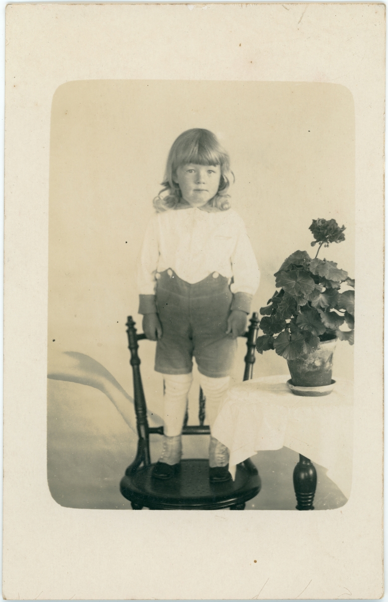Barn som står på en stol