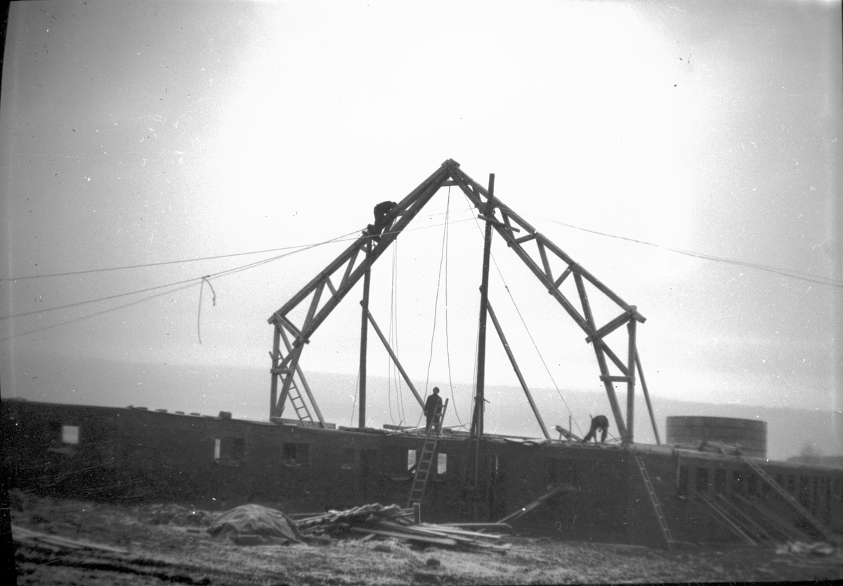 Titel: Ladugården. Nya ladugården under uppförande 1949.