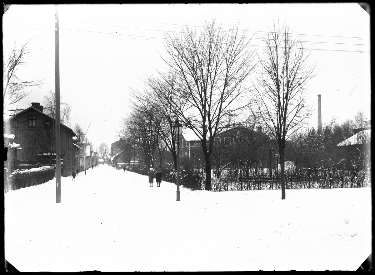 Wibomska tomten i nuvarande Kv. Krassen. I bakgrunden skorstenen tillhörande garveriet.