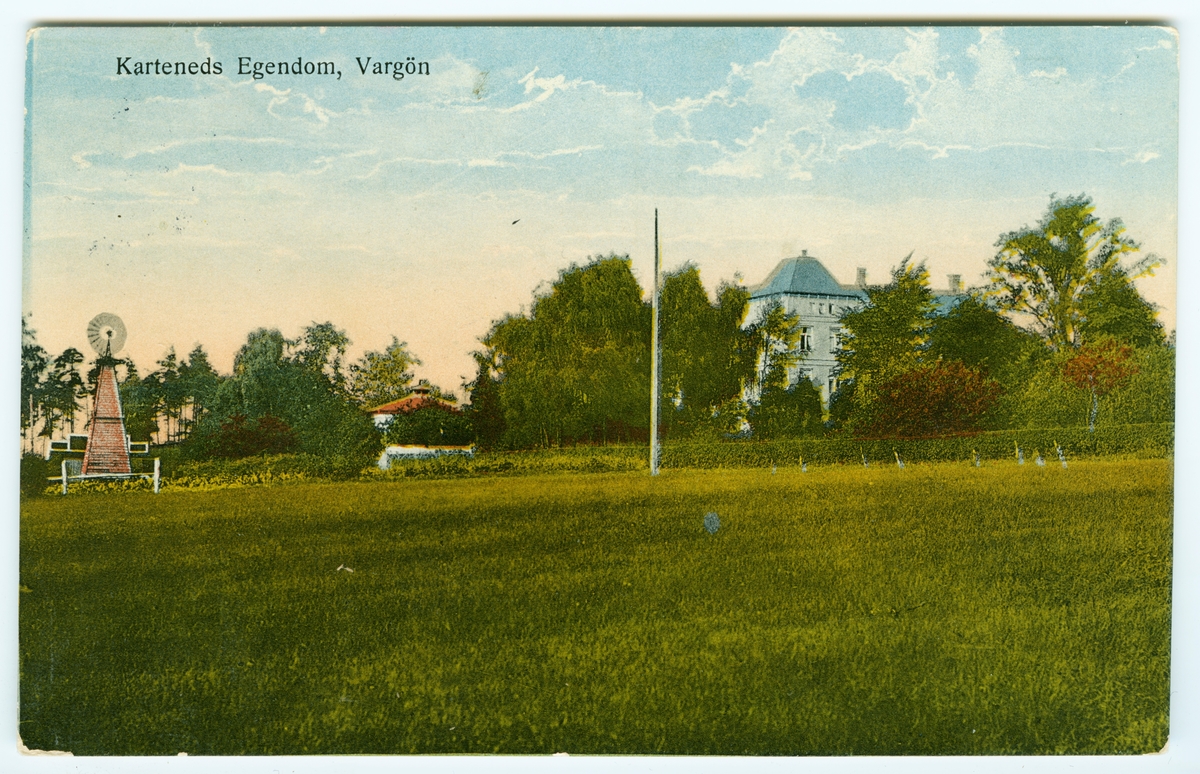 Kartens gård. Text på vykort "Karteneds Egendom, Vargön"