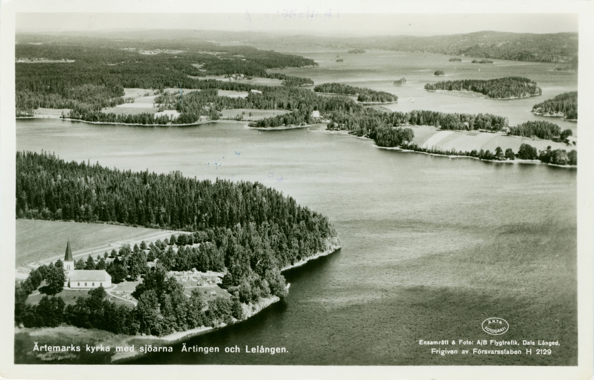 Ärtemarks kyrka med sjöarna Ärtingen och Lelången