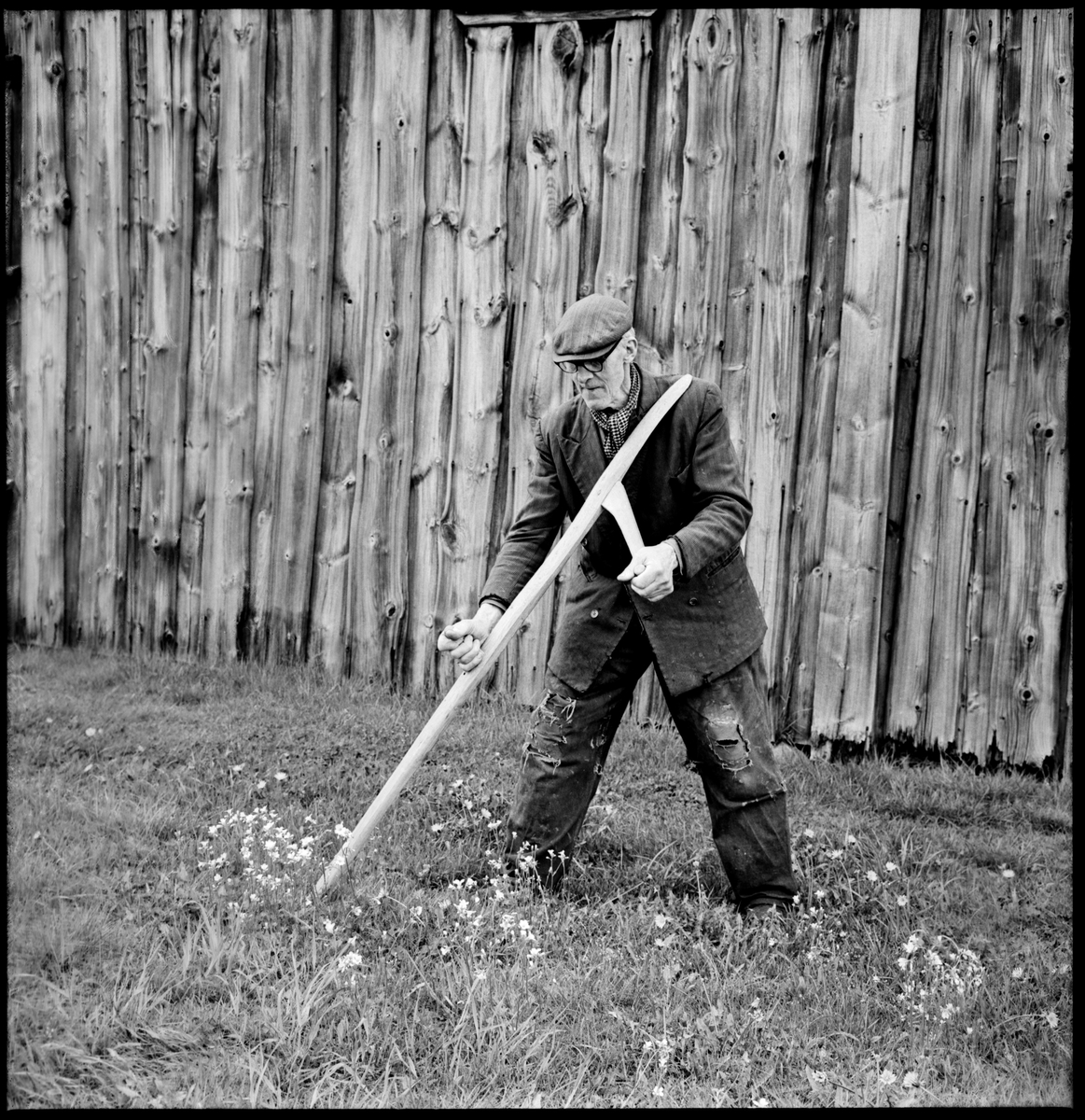 Hembygdsgården, Gäserudsstugan. Man som slår m lie.