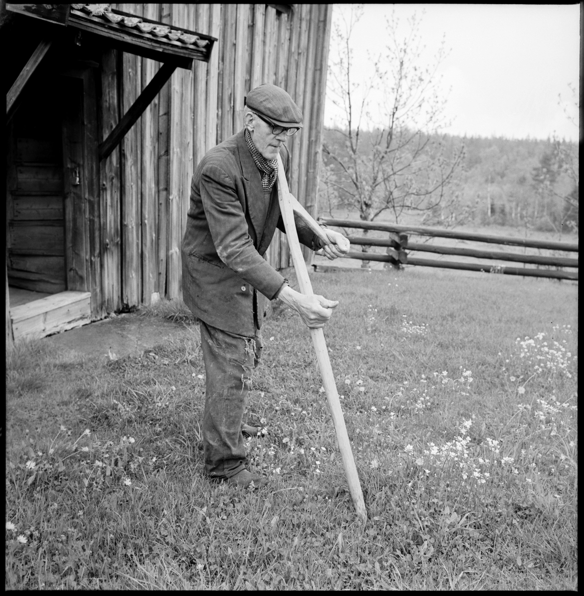 Hembygdsgården, Gäserudsstugan. Man som slår m lie.