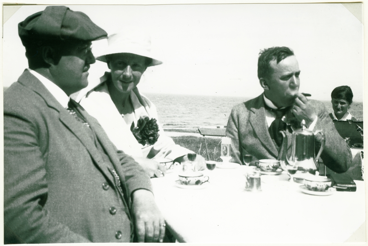 Danmark, Gilleleje. Birger Sjöberg med danska journalistkollegor