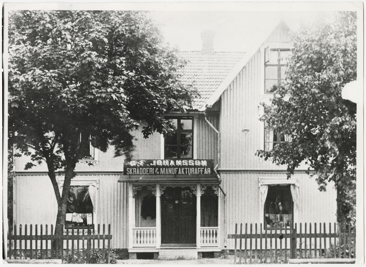 Bäckefors. O.F Johanssons skrädderi & manufakturaffär. Gamla Postgatan 17