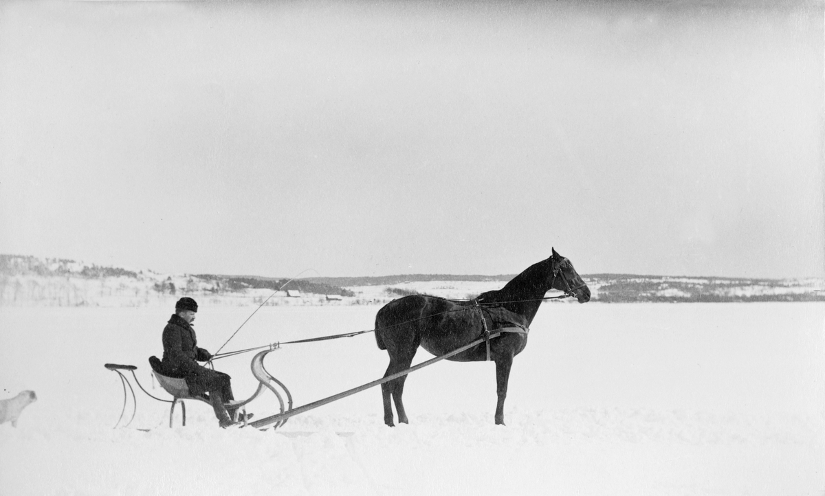 Lerums socken. Aspenäs herrgård, på Aspens is, förvaltaren Fredrik Sandberg med hästen Inanita