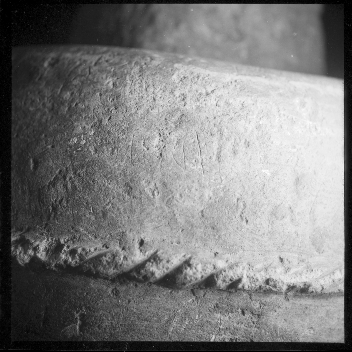 Runskrift på dopfunt i kyrkan. Norra Björke
