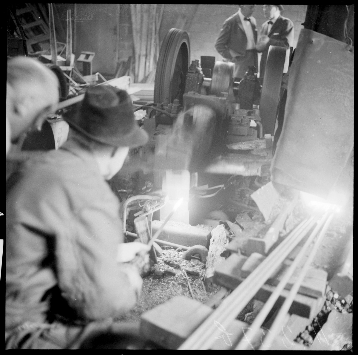 Bäckefors bruk. Disponent Bjurström smider spik i gamla bruket.