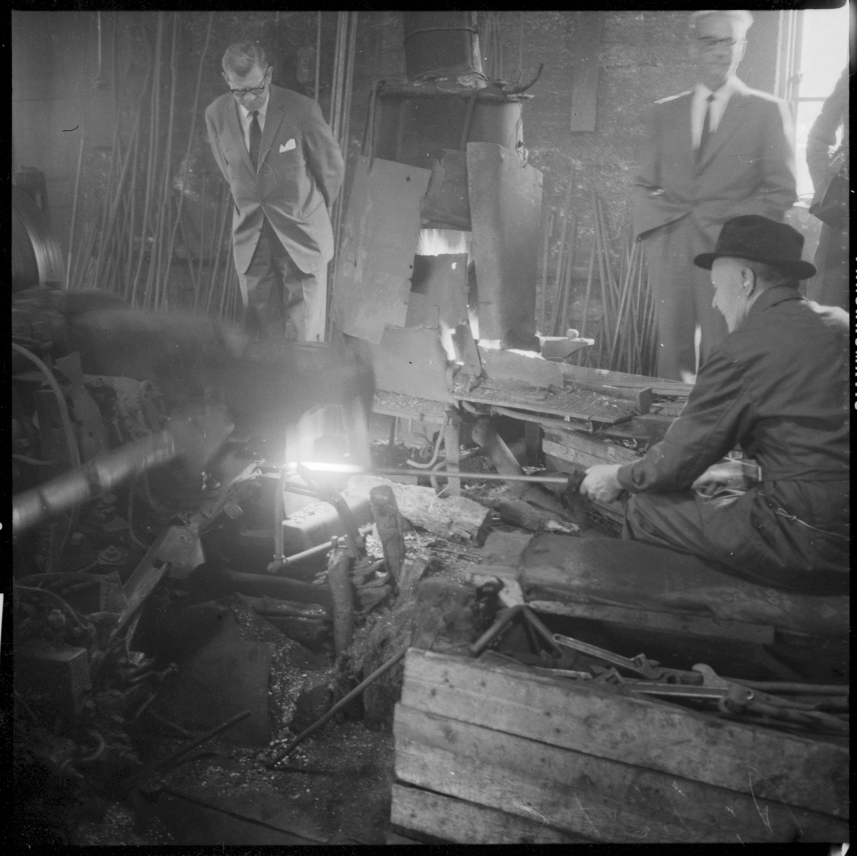 Bäckefors bruk. Disponent Bjurström smider spik i gamla bruket.