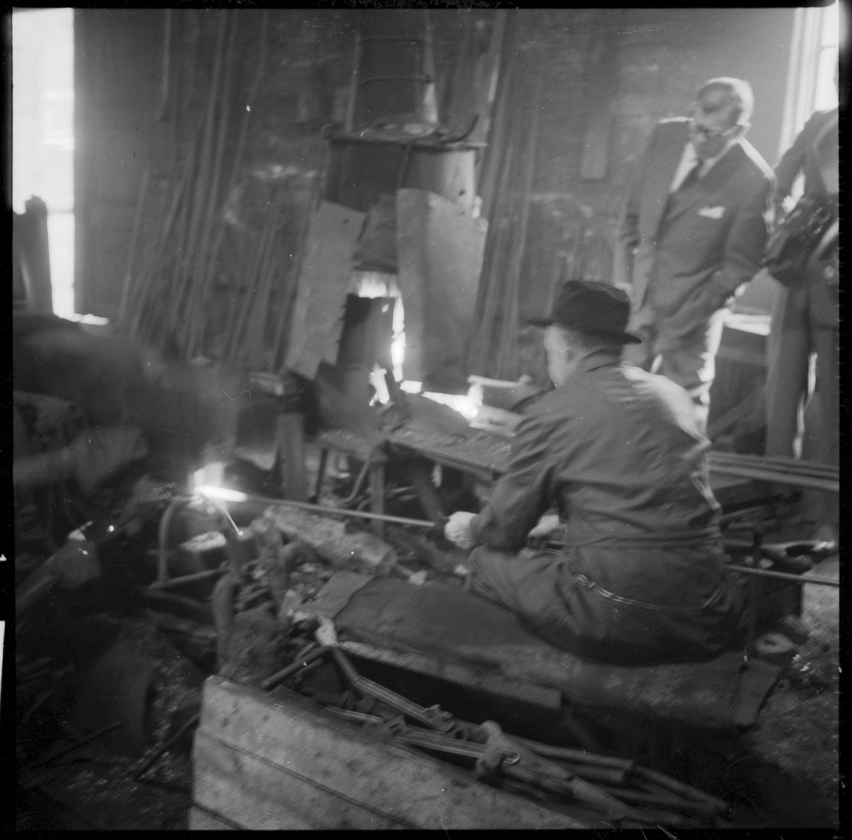 Bäckefors bruk. Disponent Bjurström smider spik i gamla bruket.