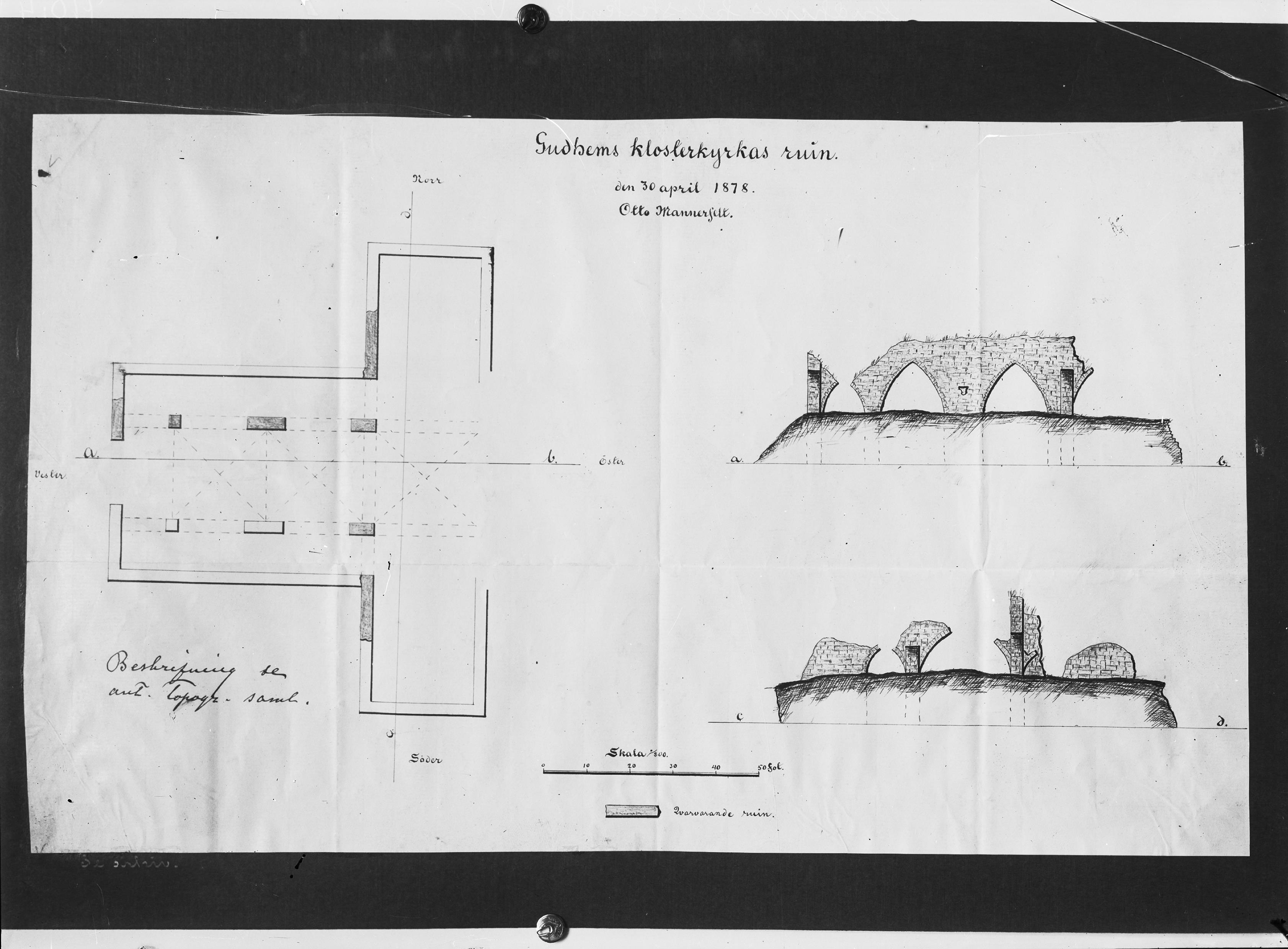 Klosterkyrkoruinen. Foto efter uppmätningsritning, av Otto Mannerfelt, 30 april 1878.