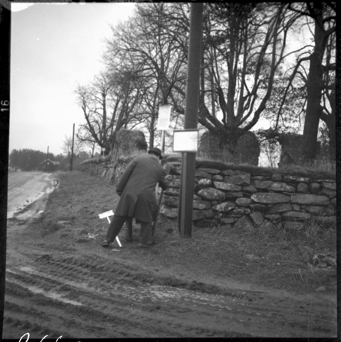 Skallsjö. Uppsättning av skyltar vid kyrkoruin.