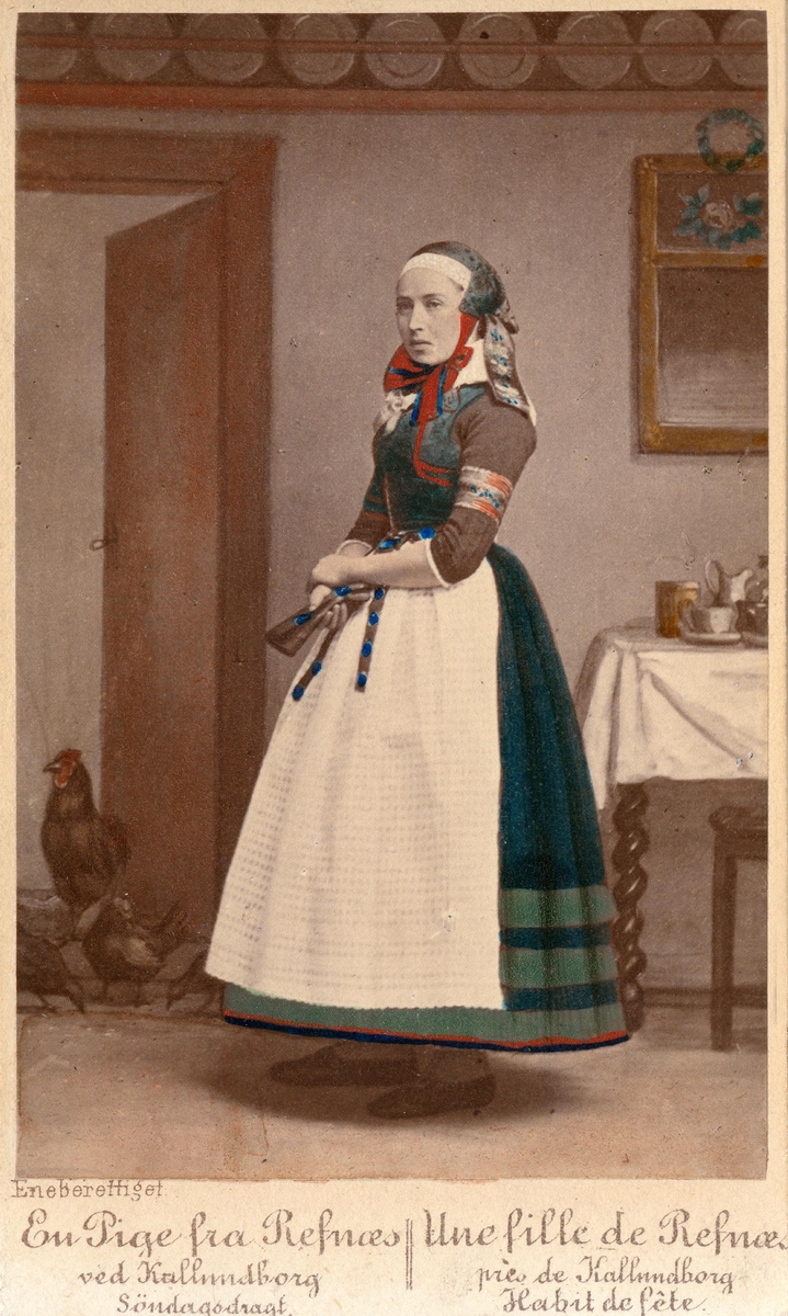 "En pige fra Refnaes ved Kallundborg. Söndagsdragt"