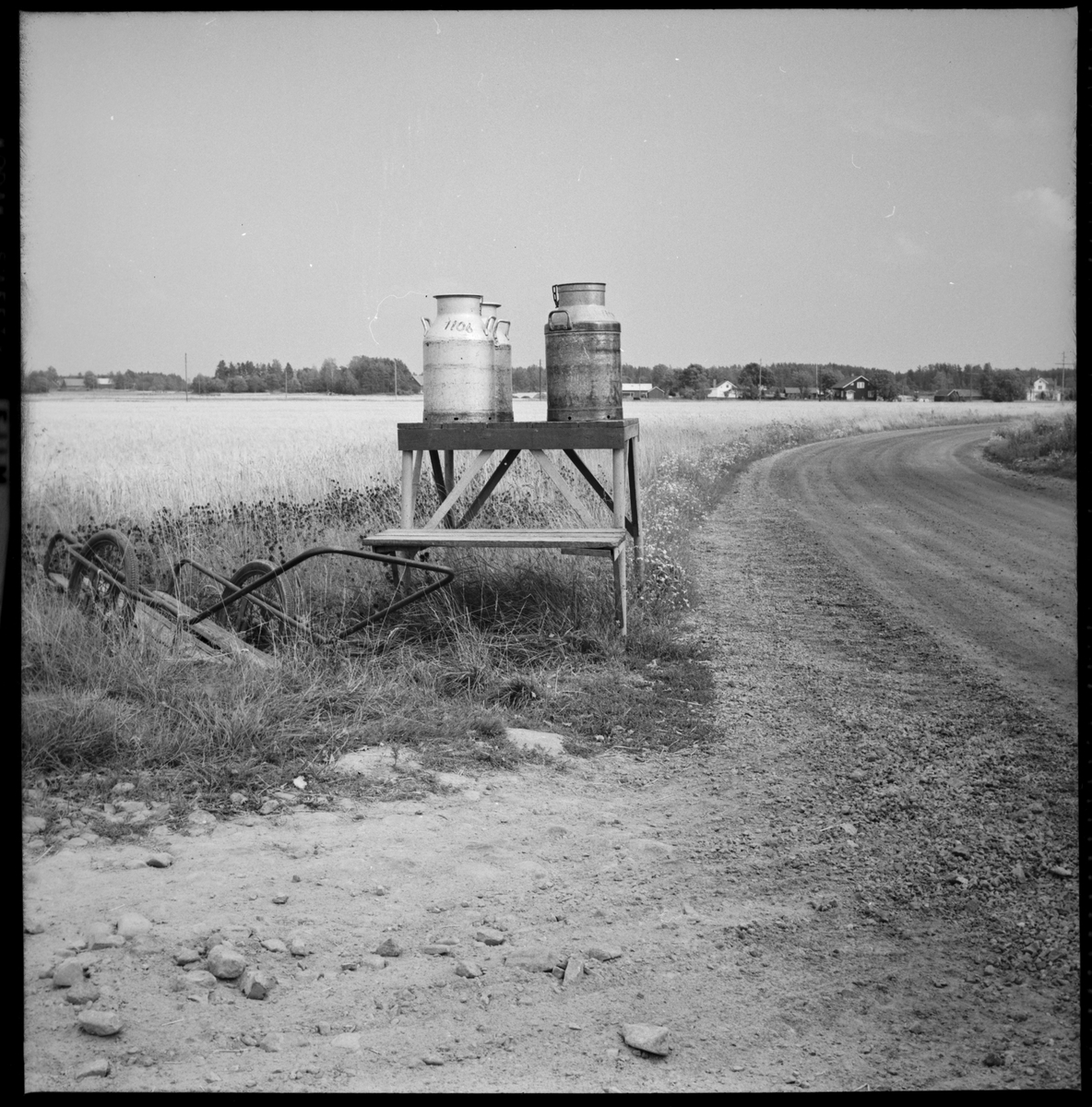 Mjölkbord med mjölkkannor på.