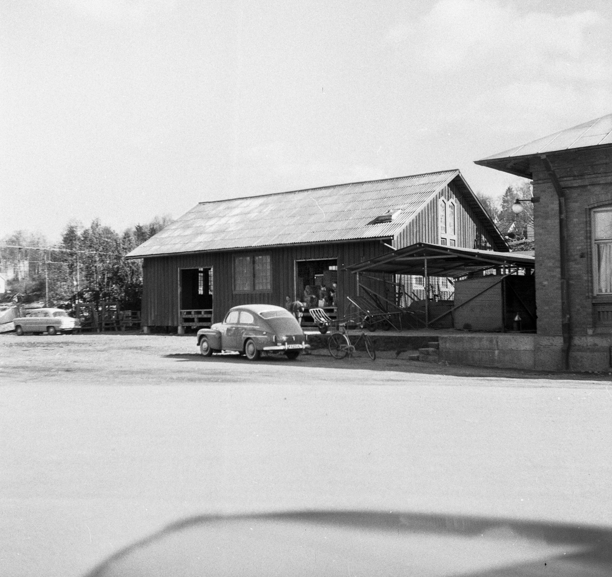 Lerums station. Godsmagasinet till vänster om stationsbyggnaden