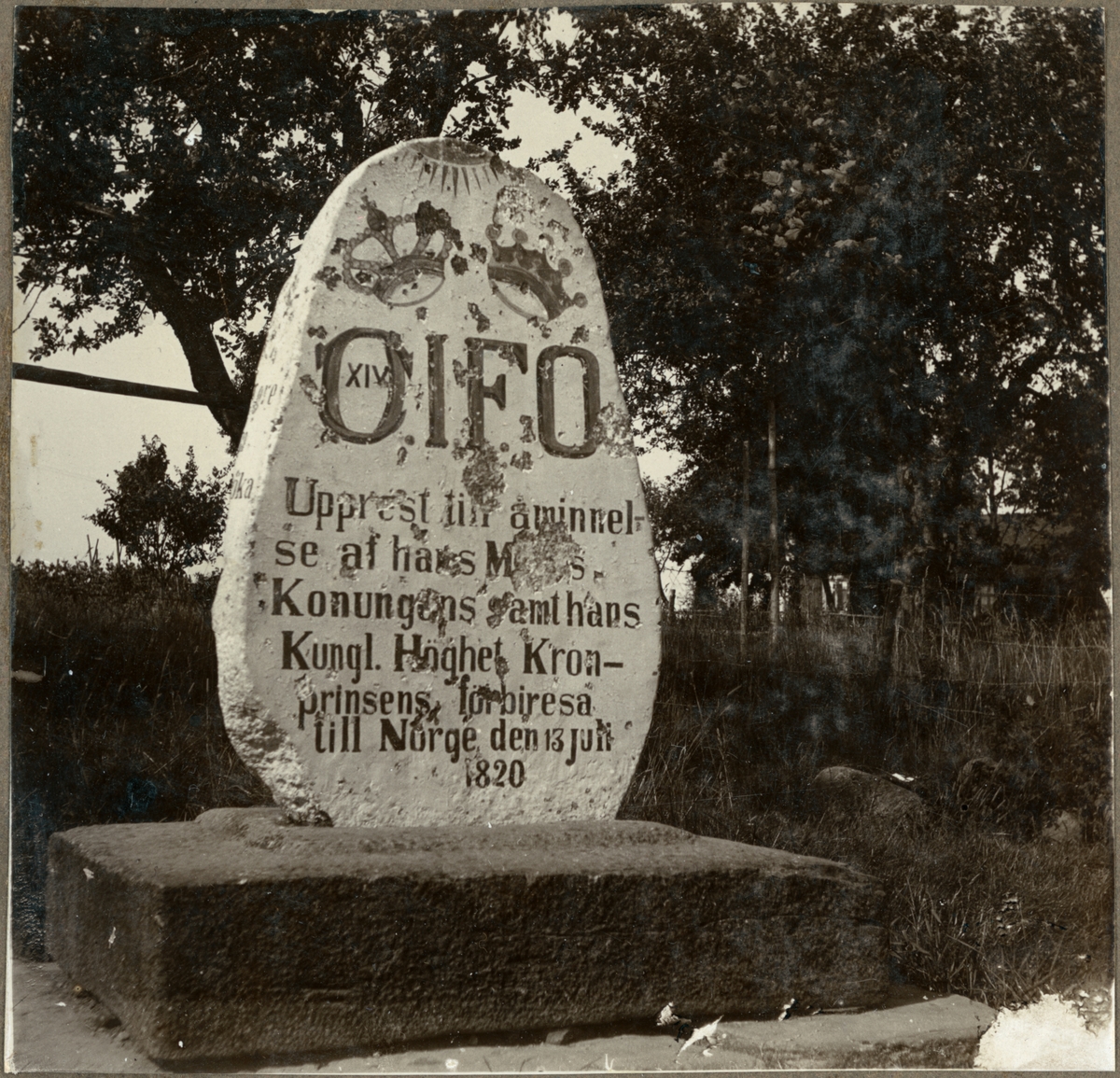 Mellerud. Minnessten, kung Karl XIV Johan och kronprins Oscar, 13 juli 1820.