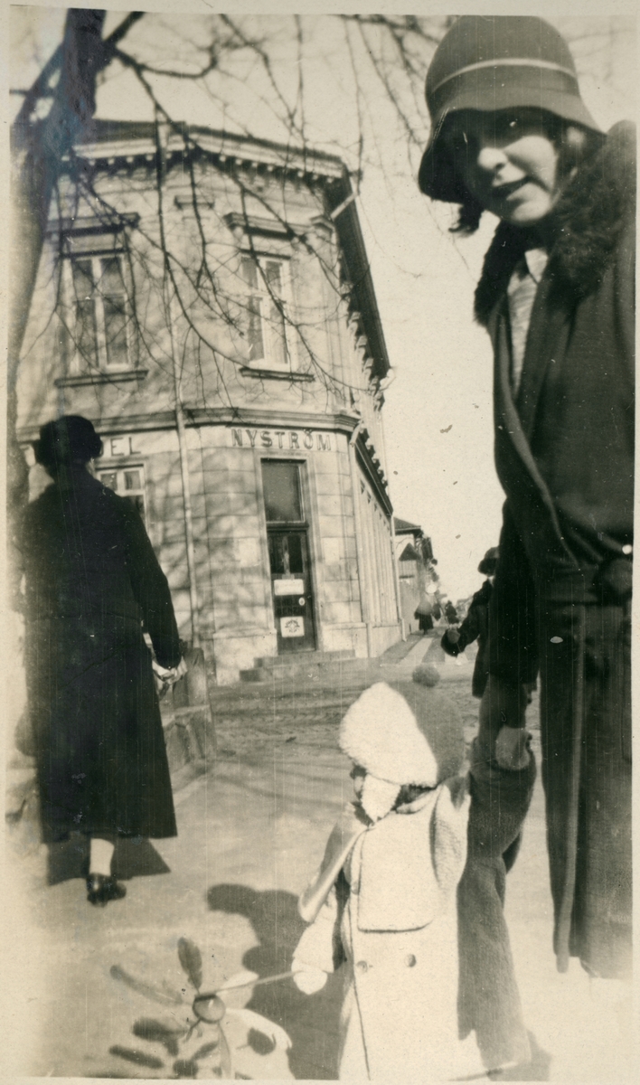 Titel: Vänersborg, Residensgatan - Drottningatan. Karl Fredrik Nyström och okänd flicka