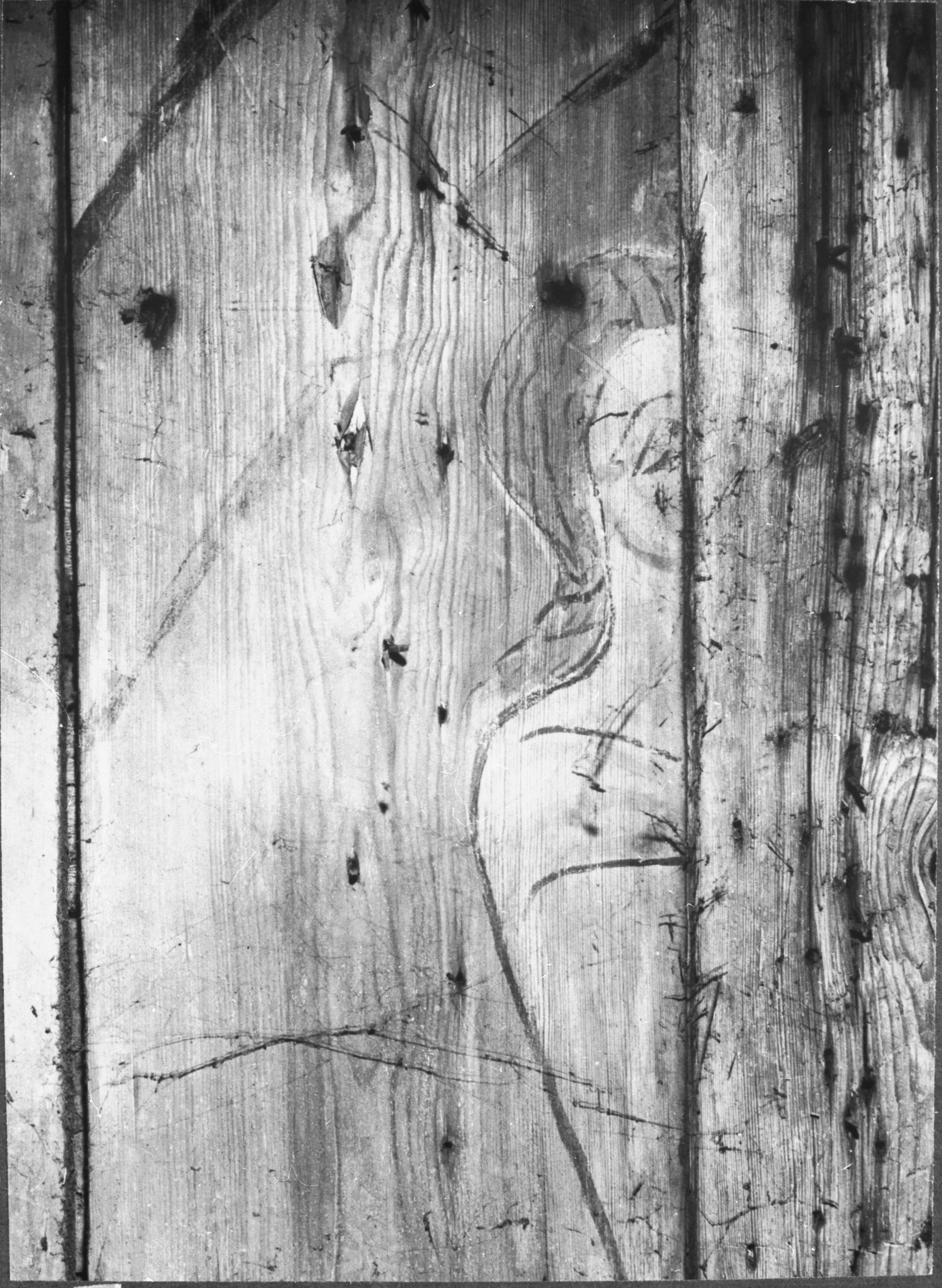 Målade brädor från tidigare kyrka.