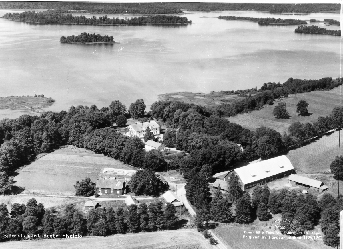 Text på bild: "Sjörreds Gård Vegby Flygfoto"