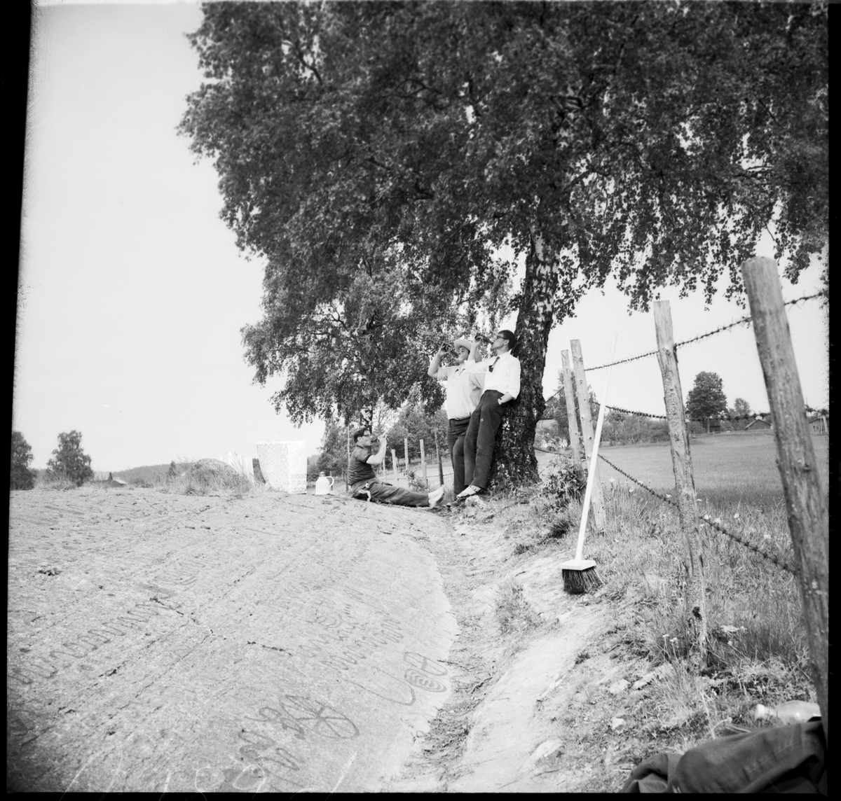 Tisselskog, Högsbyn. Hällristningarna imålas. En paus i arbetet.