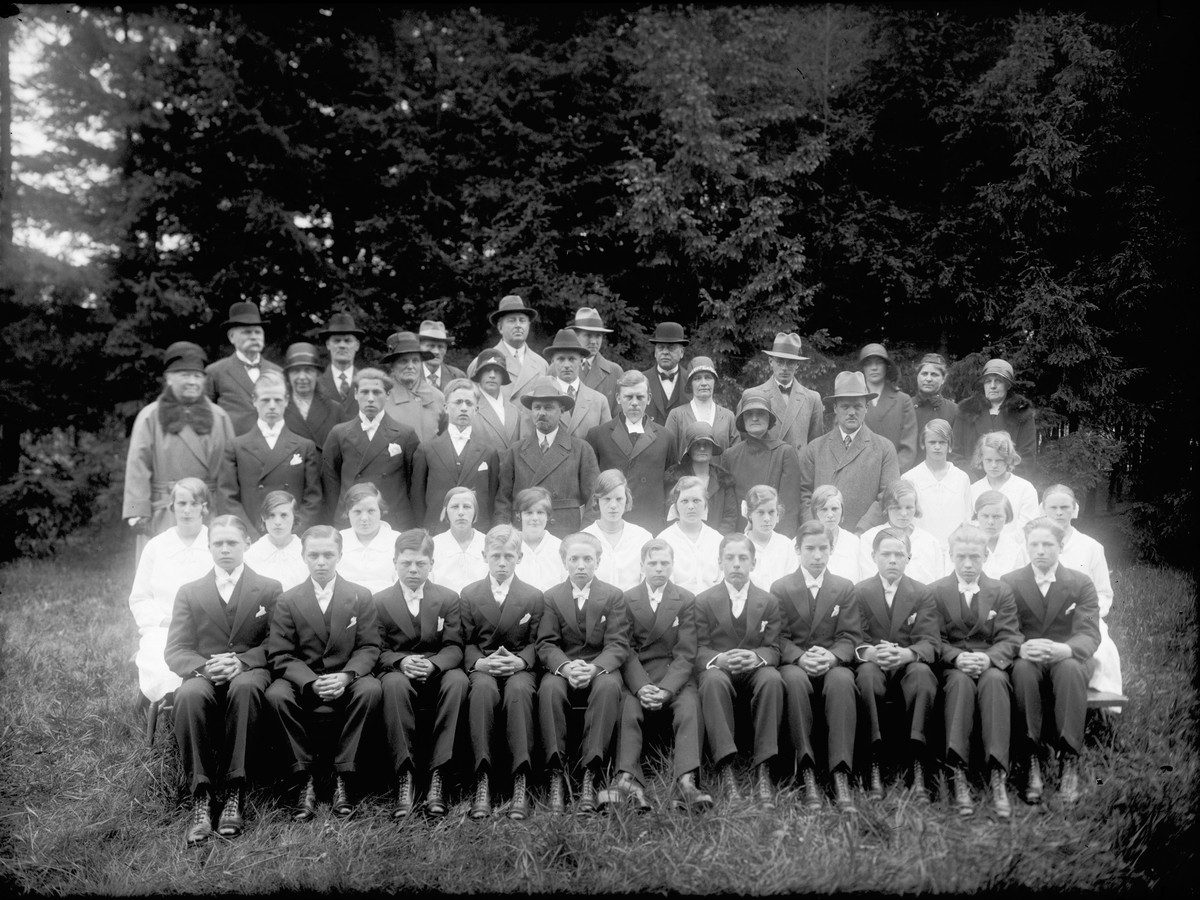 Vänersborg. Elfsborgs läns Dövstumskola, senare Vänerskolan. gruppbild lärare och elever