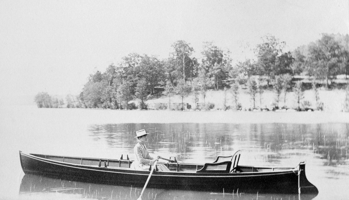 Lerums socken. Aspenäs herrgård, båt på Aspen, Hermine Henriques