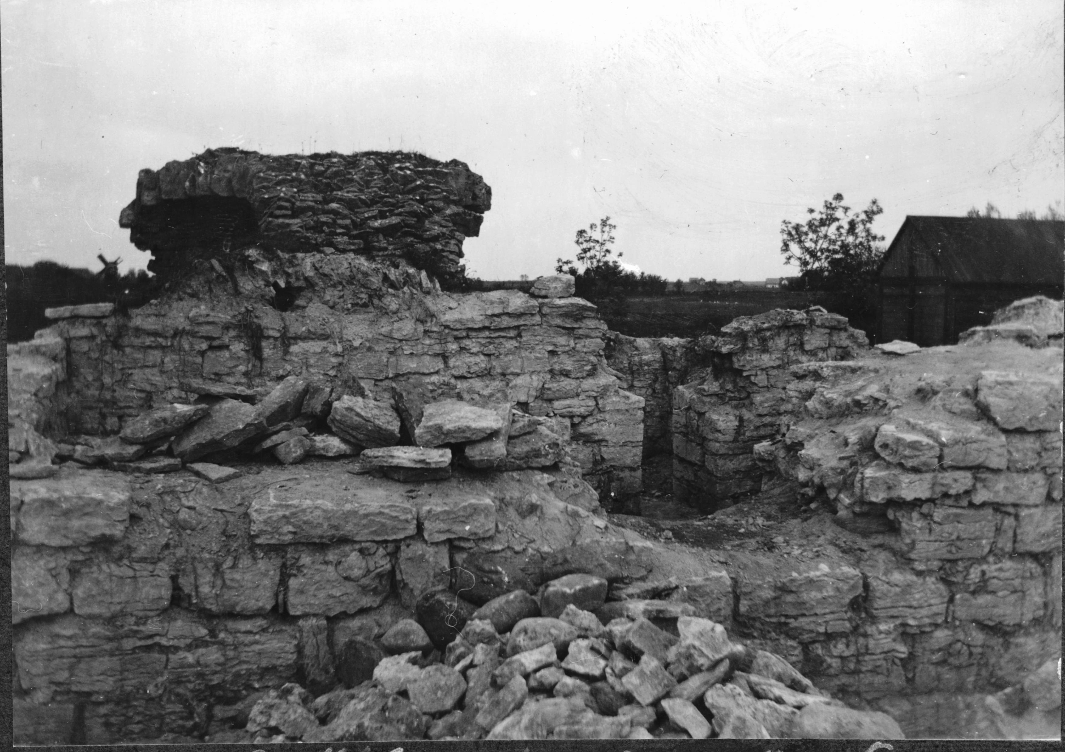 Prästgårdsruinen, medeltida, efter utgrävning 1926. Från väster.