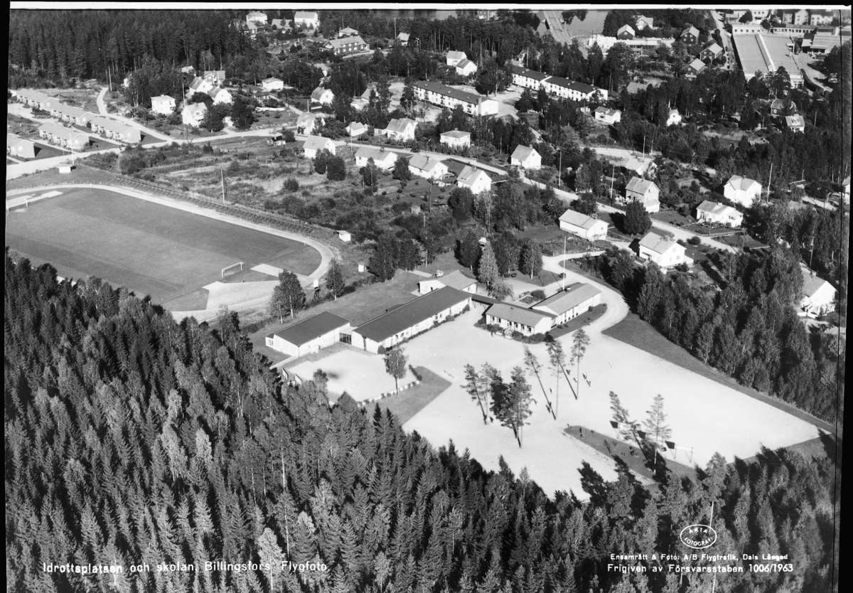 Idrottsplatsen och skolan, Billingsfors Flygfoto