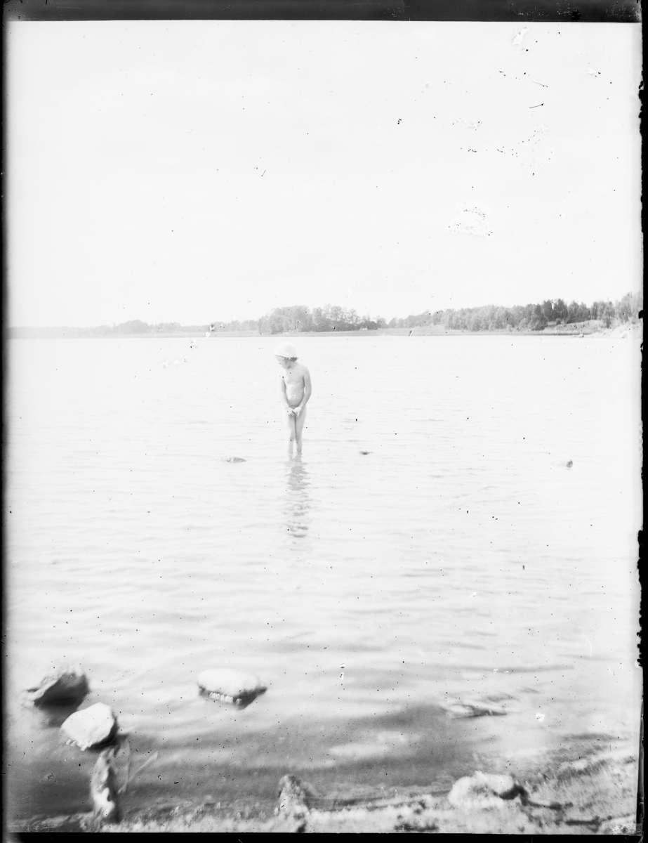 Sjön är så stor, så stor, Gunnar är så liten. Gunnar badar i Hästefjorden.