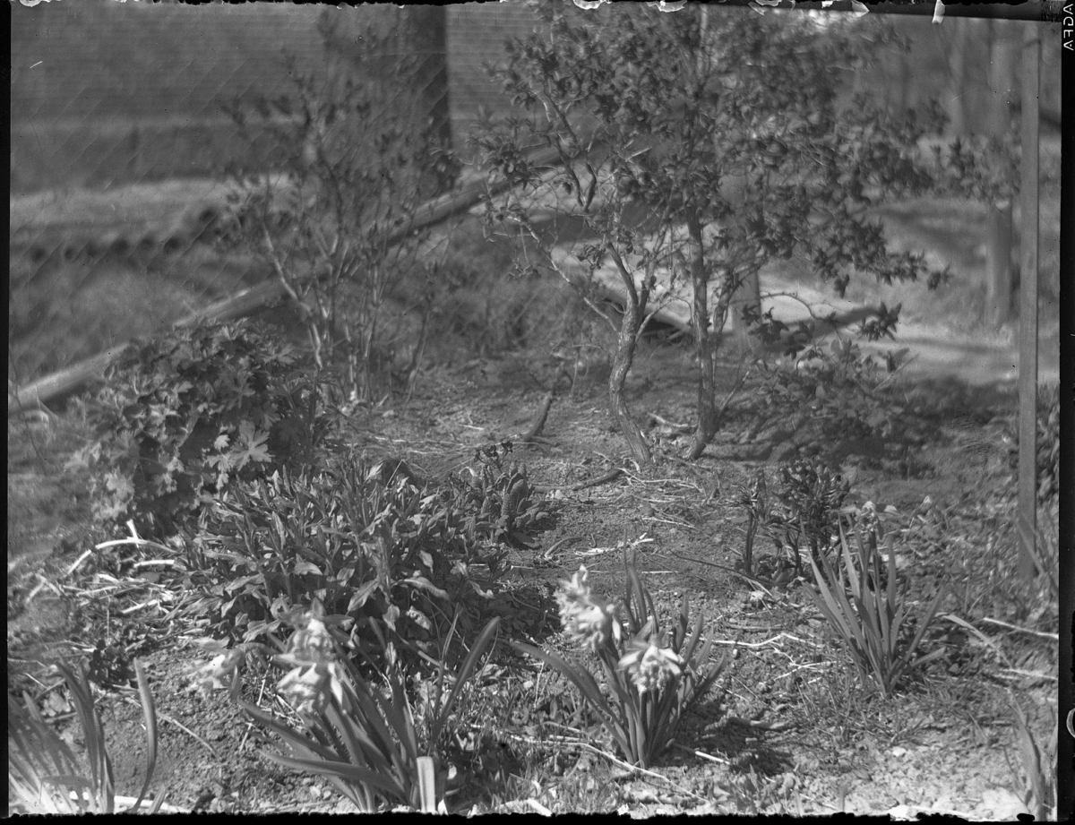 Vårbild i trädgården: Vårväxter på rabatthörnet.