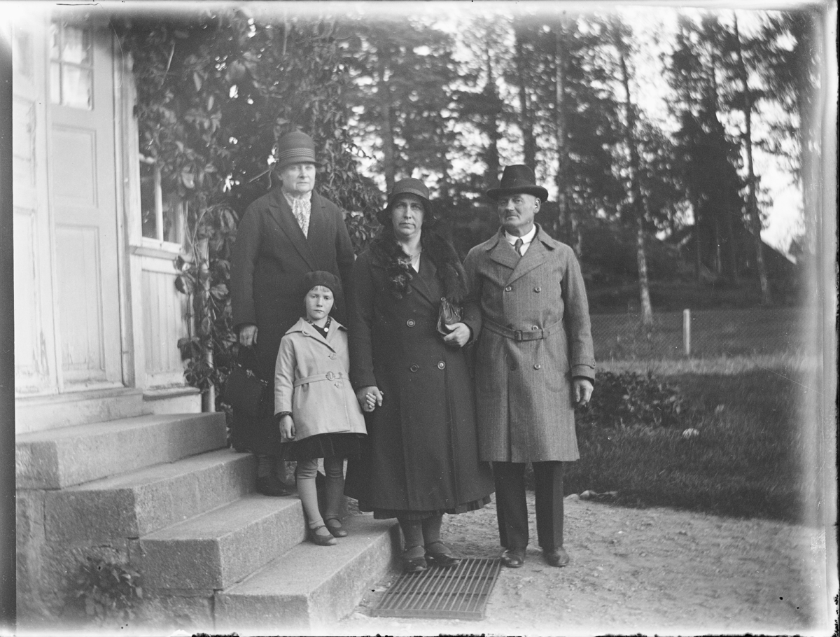 Morbror Oskar, Moster Mia, Mamma och lilla Ulla på trappan.