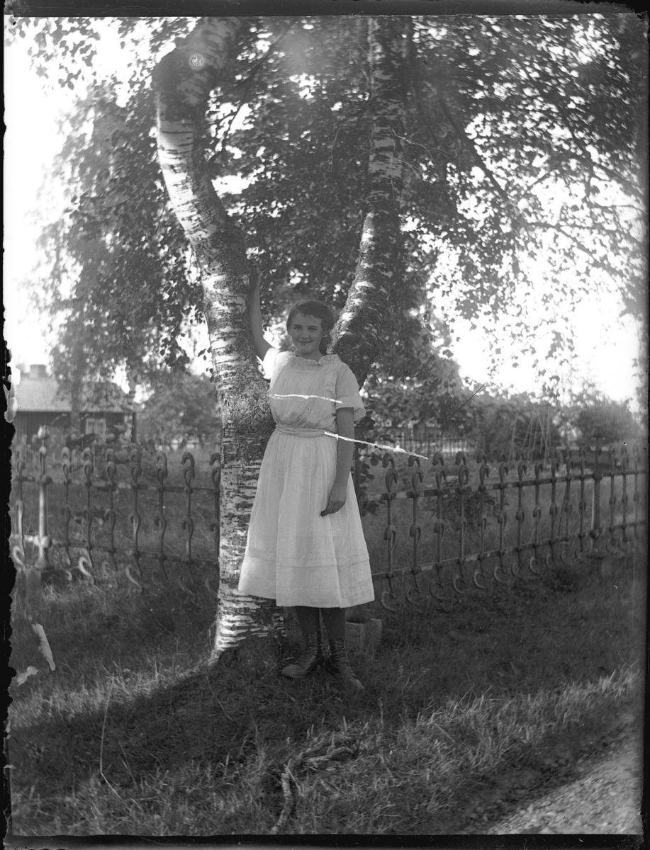 Frieda von zur Mühlen från Dorpat stående vid en björk.