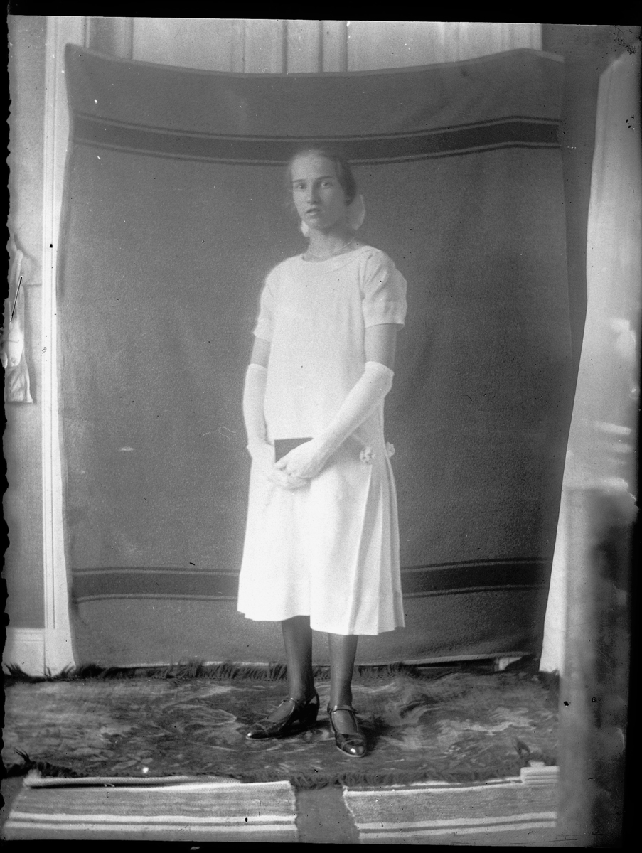 Märta i konfirmationsklänning.