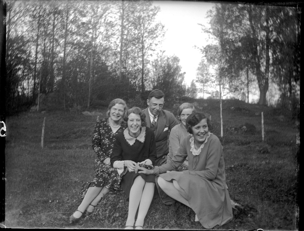Sångarfärden till Bjurbäck och Bottnaryd. Körmedlemmar i trädgården vid Bjurbäcks prästgård.