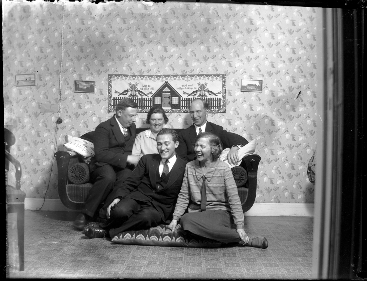Tumbergs skola. Grupp vid soffan hos Annie Johansson.