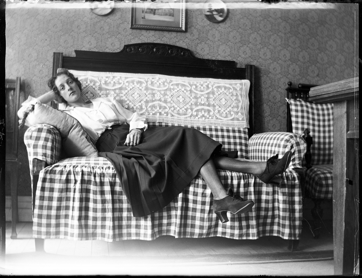 Porträtt. Kvinna som ligger på soffa