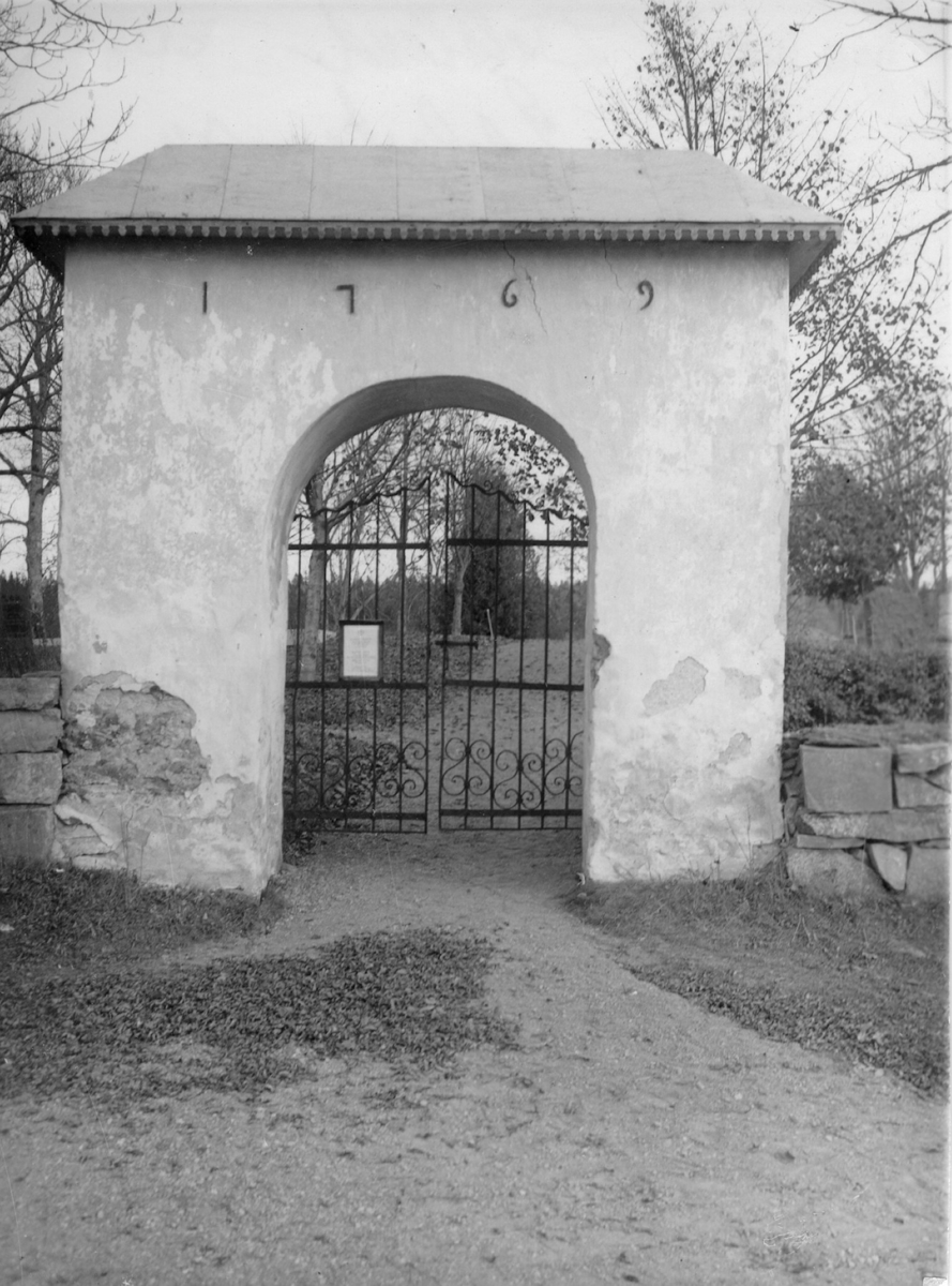 Edsleskog kyrka från väster.Kyrkogårdsporten