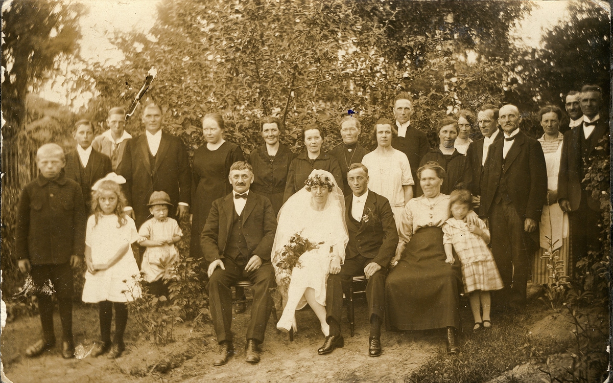 Bröllopsfotografi. Det äldre paret är Kristina och Johan Eriksson, troligen deras dotter Helgas bröllop. Blåsut, Vänersborg