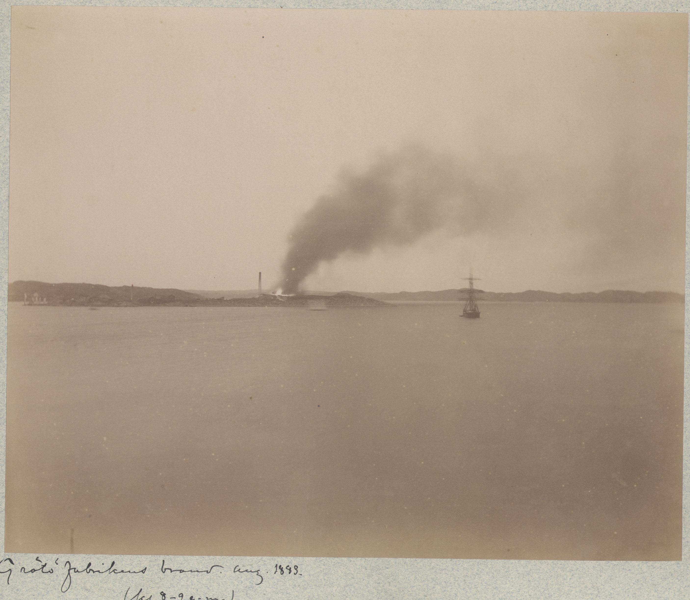 Fabriken på Grötö brinner i augusti 1883 (klockan 20-21).