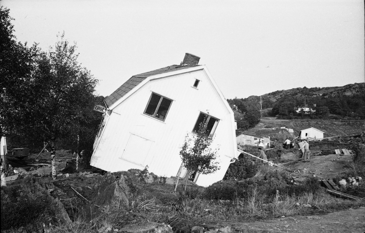 Över 30 hus drogs med i det 400 meter breda och 600 meter långa skredet av kvicklera ner mot Göta älv. Rasmassorna kom att blockera fartygstrafiken på älven i flera veckor.