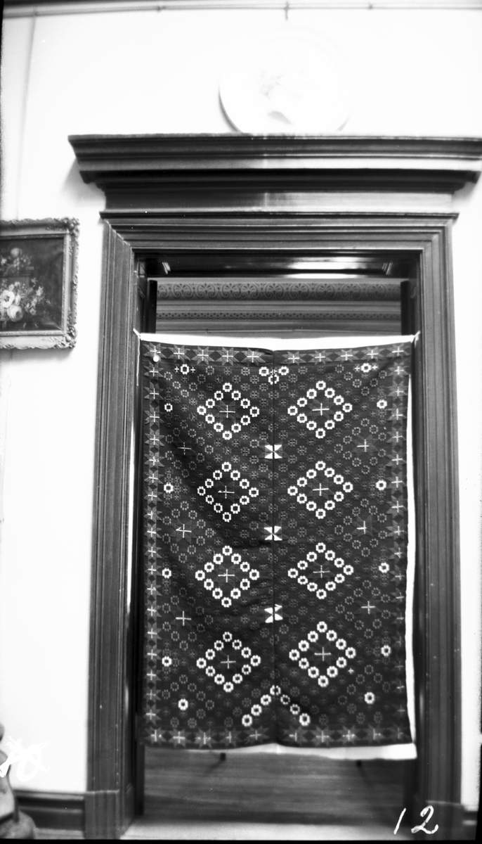 Täcke, krabbasnår o munkabältsstjärnor i rött, grönt, gult, blått i 2 bredder. Svart botten 115 x 180. 1700-talet.