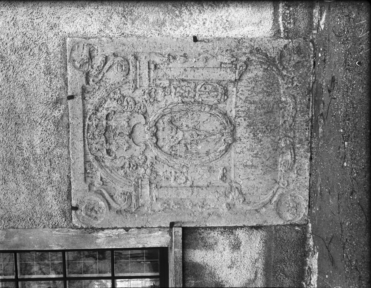 Gravvård av kalksten över inspektören Claes Tengman 1705. Fuxerna