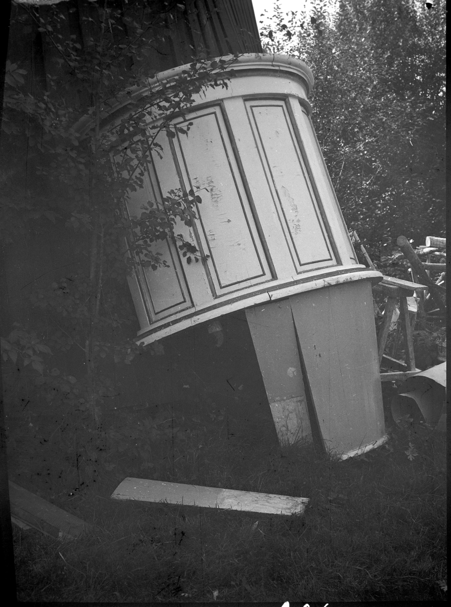 Den vid restaureringen kasserade predikstolen. Rölanda kyrka