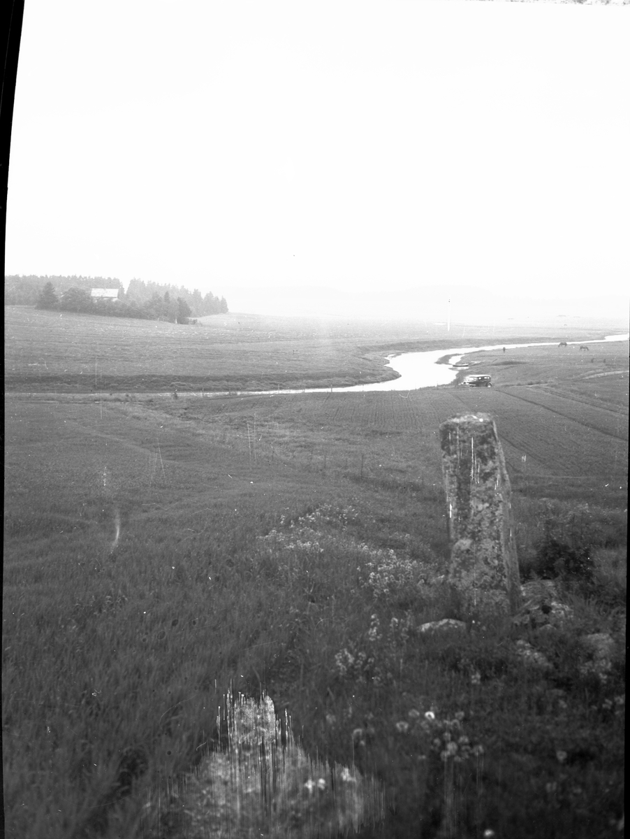 Bautasten, i bakgrunden Valboån. Brasäter Högsäter