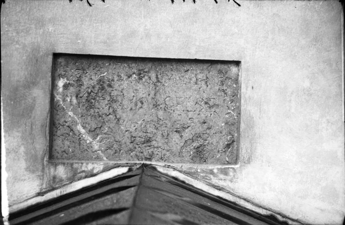 Inskrift på kalkstenshäll över ingången. Gamla Kronohäktet. Vänersborg