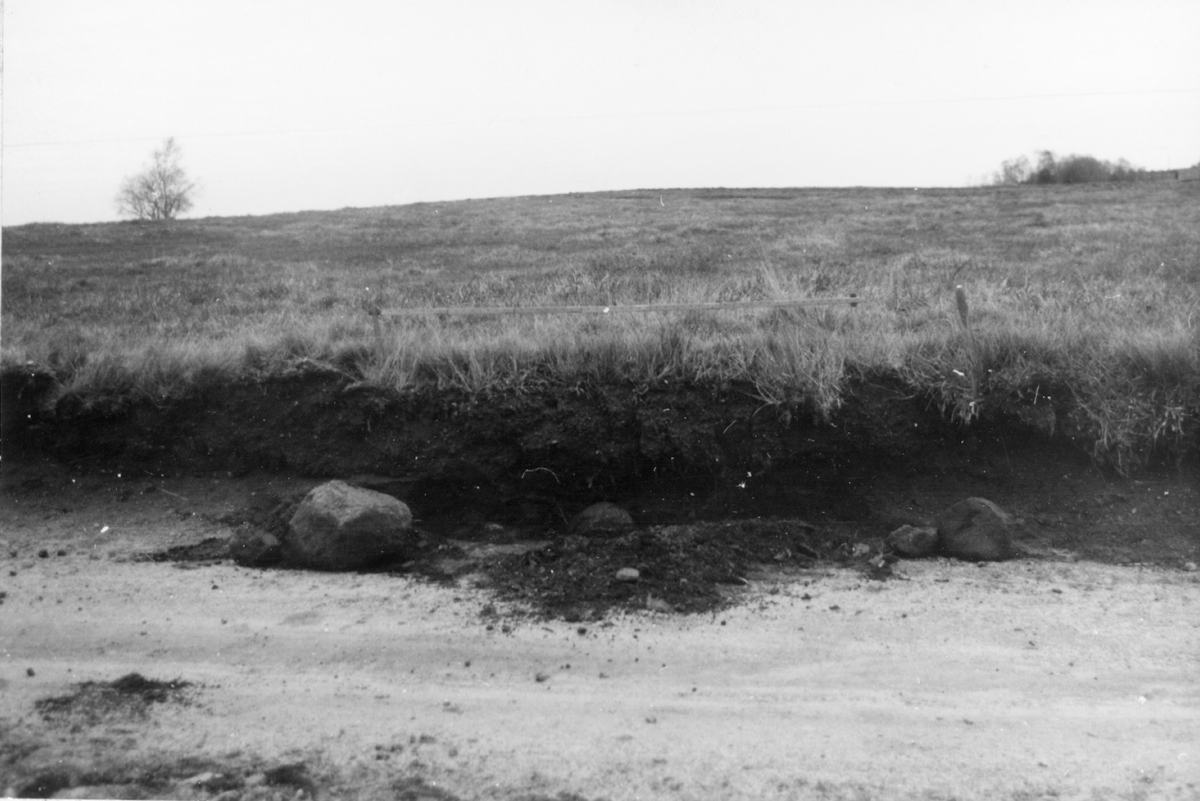 Undersökning av två brandgropar.Ambjörnsgården Hol. Väg mot NO med Ambjörnsgården till V. Den västra av de båda brandgroparn i vägens N. kant. Ägare av gården: Olof Johansson. R 659/63.