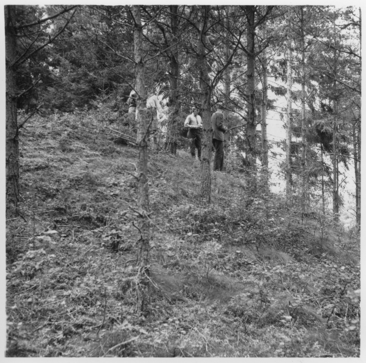 Några personer vandrar i ett fornlämningsområde. Hol
