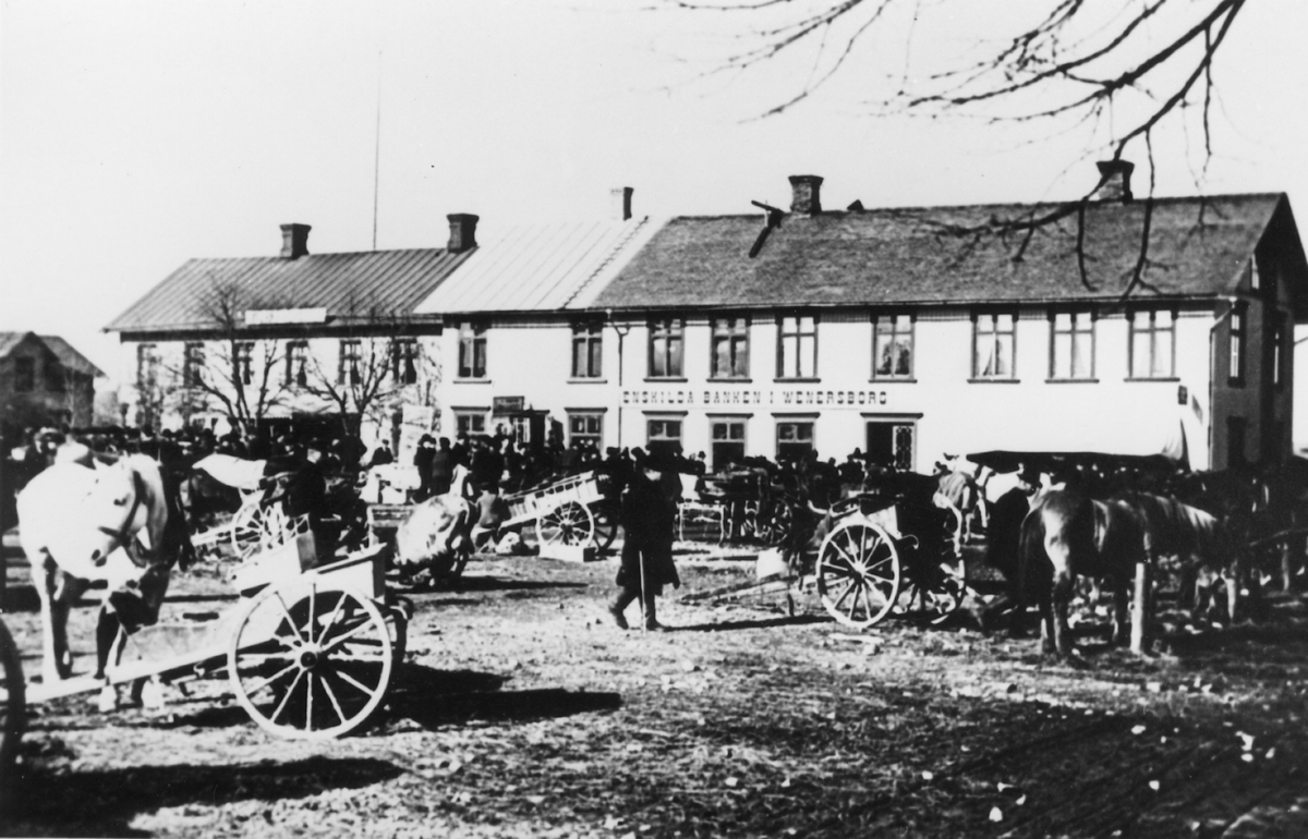 Torget i Mellerud. Hästtransporter.