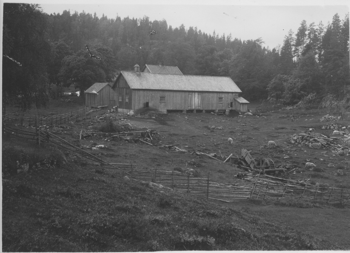 Gården fr. Ö. I förgrunden lämningar av vattensåg. Håbol